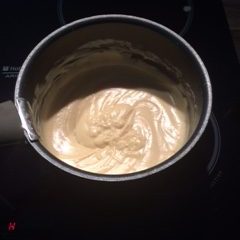 – Remettre le mélange dans votre casserole sur le feu sans cesser de remuer (garre aux grumeaux)